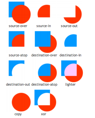 La propriété globalCompositeOperation permet de spécifier comment doivent se comporter les tracés en cours (source) par rapport aux tracés initiaux (destination)